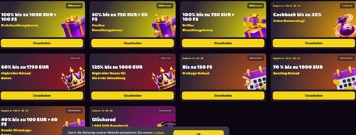 Im Bereich der einzahlungsfreien Boni können unterschiedliche Formate vorkommen, zum Beispiel Freispiele oder Bonusguthaben für bestimmte Spiele. Die genauen Details sind immer in den jeweiligen Bonusbedingungen festgelegt.