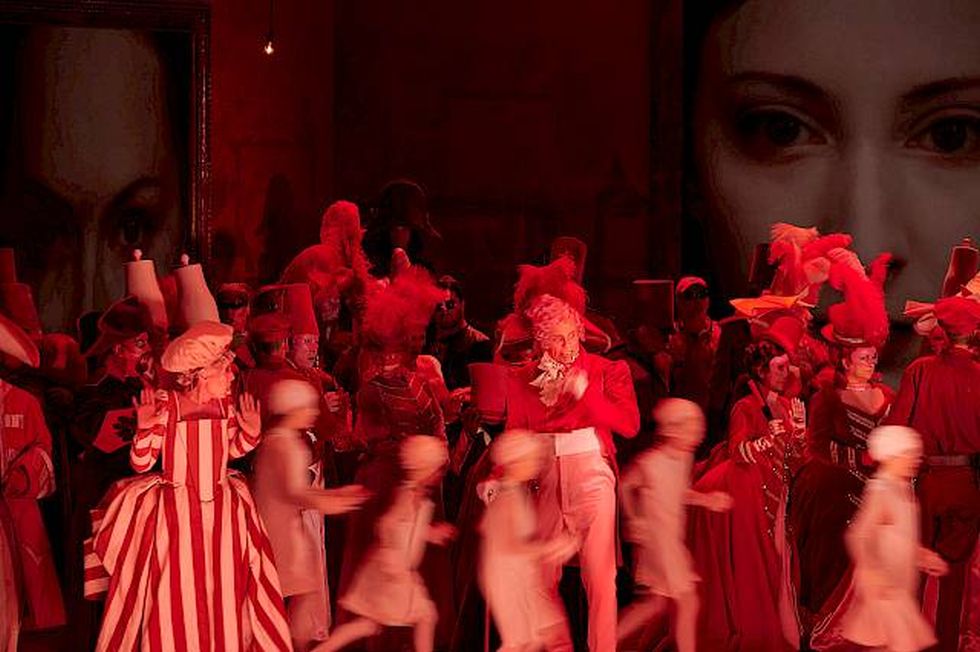Wie schon vor zwei Jahren am Luzerner Theater hat Lydia Steier eine beeindruckende Inszenierung konzipiert. Sie hatte ja vor rund zwanzig Jahren in Los Angeles eine Produktion des ‚Rosenkavaliers‘ gesehen, deren Ausstattung des österreichisch-irischen Künstlers Gottfried Helnwein sie sehr begeisterte. Ihr Traum war, einmal die künstlerische und gestalterische Leitung einer Inszenierung mit ähnlichen Kulissen und Kostümen, jedoch mit einem feministischen Approach, selber zu übernehmen. Inzwischen ist Lydia Steiers Traum von damals in Erfüllung gegangen: zusammen mit Gottfried Helnwein inszeniert sie den ‚Rosenkavalier‘. Auch am Opernhaus Zürich zeigt sie dem Publikum keine wirklich bestimmte Periode, sondern eher Interaktion und Kontrast zwischen Realität und Surrealem. Hier hilf natürlich insbesonders Helnweins Bühnenbild in Blau (1. Akt), Gold und Gelb (2. Akt) und Rosarot (3. Akt), aber ebenfalls das präzise Light Design von Elana Siberski, die eloquenten Videos von Tabea Rothfuchs und Ruth Stofer, die farbigen Kostüme von Louise Fee-Nietzsche und die Choreographien von Tabatha Mc Fadyen.
